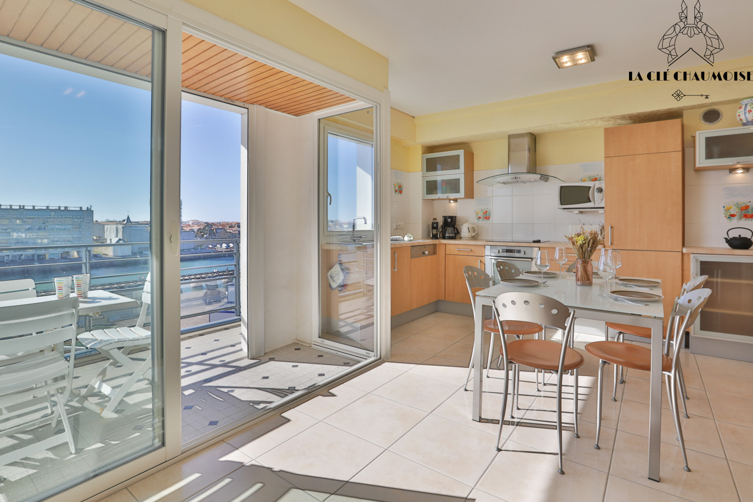 A practical and bright stay combining living room, dining area and equipped kitchen welcomes you. Perfect for sharing good moments, cooking together and relaxing after a day by the sea.