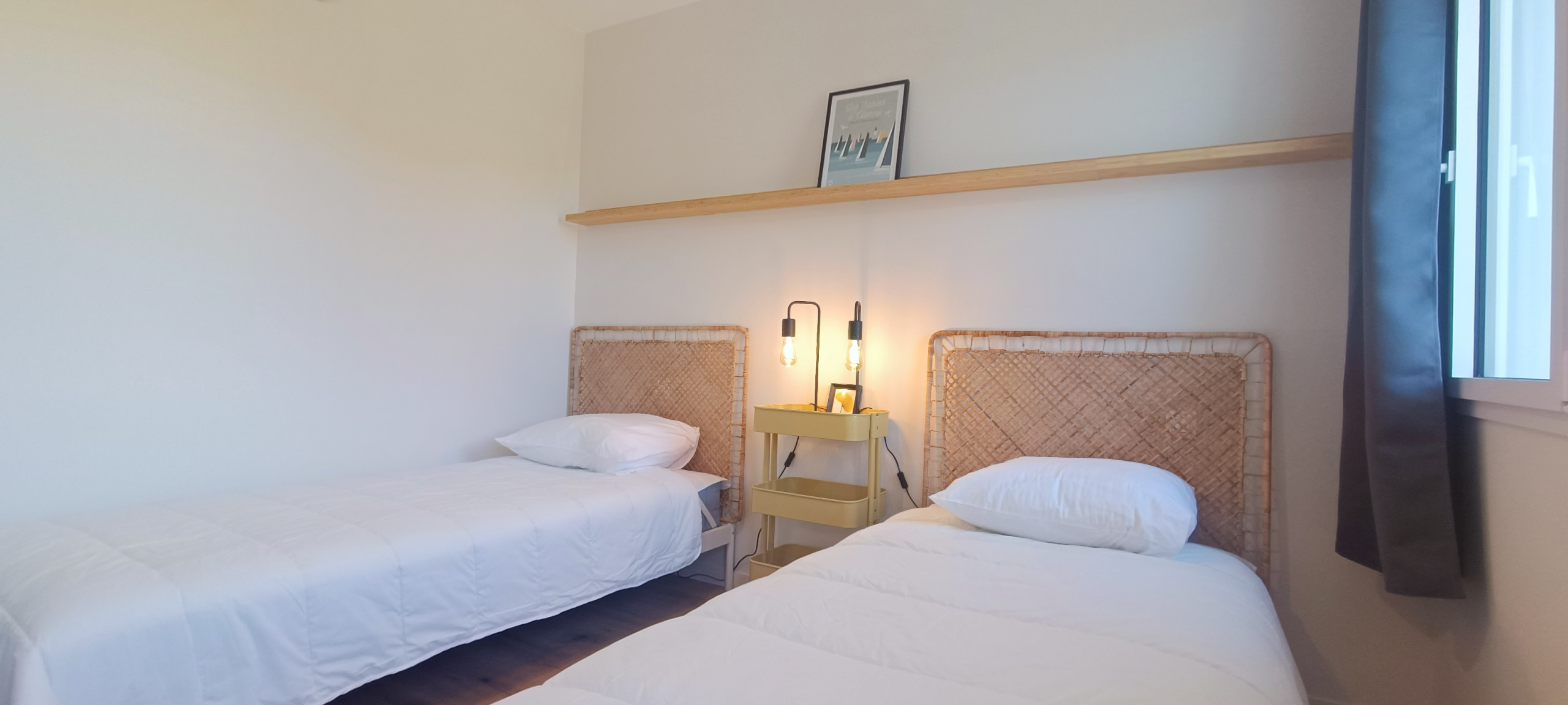 • 1 bedroom with two single beds - which can also be joined (180×200) in each house
