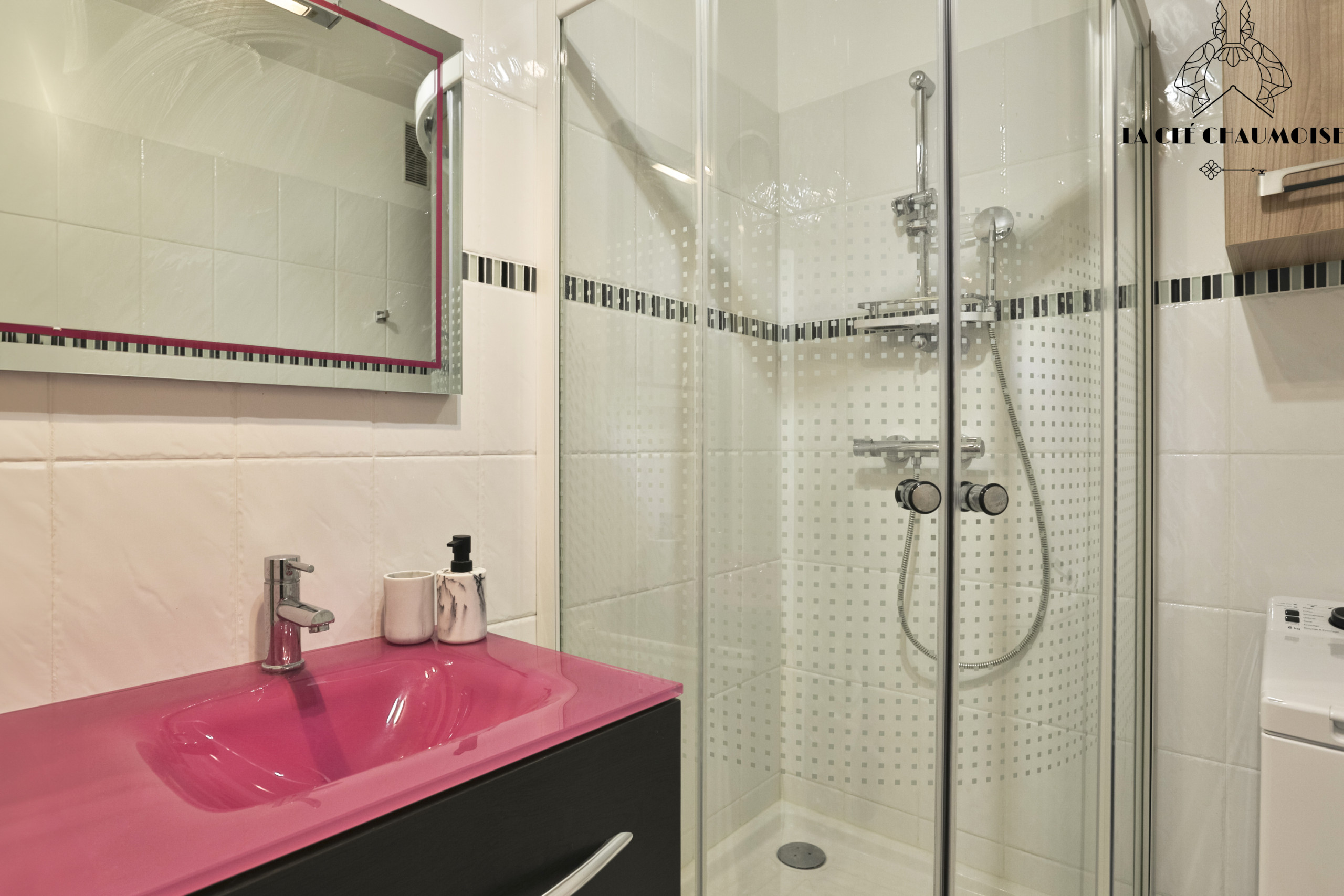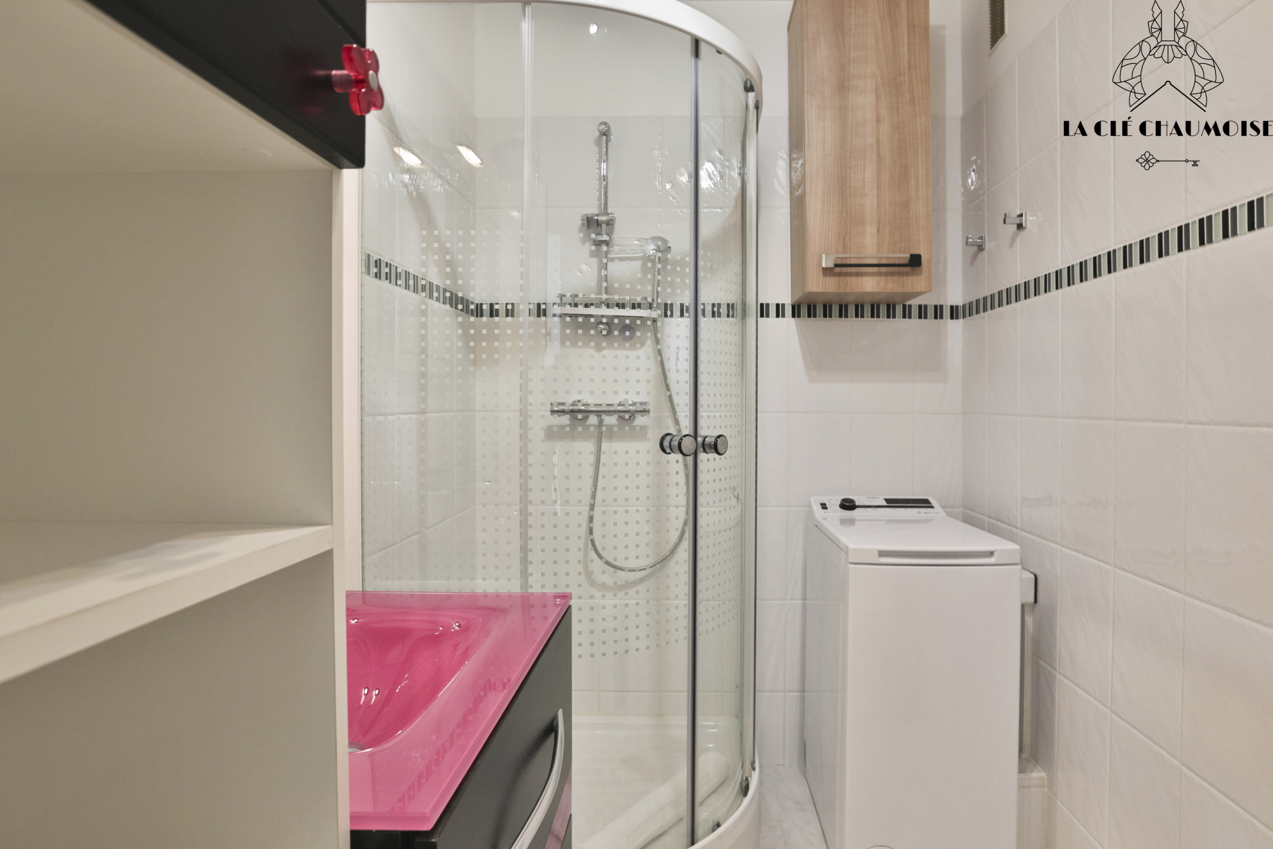 • Salle d'eau avec vasque, douche, WC et lave-linge